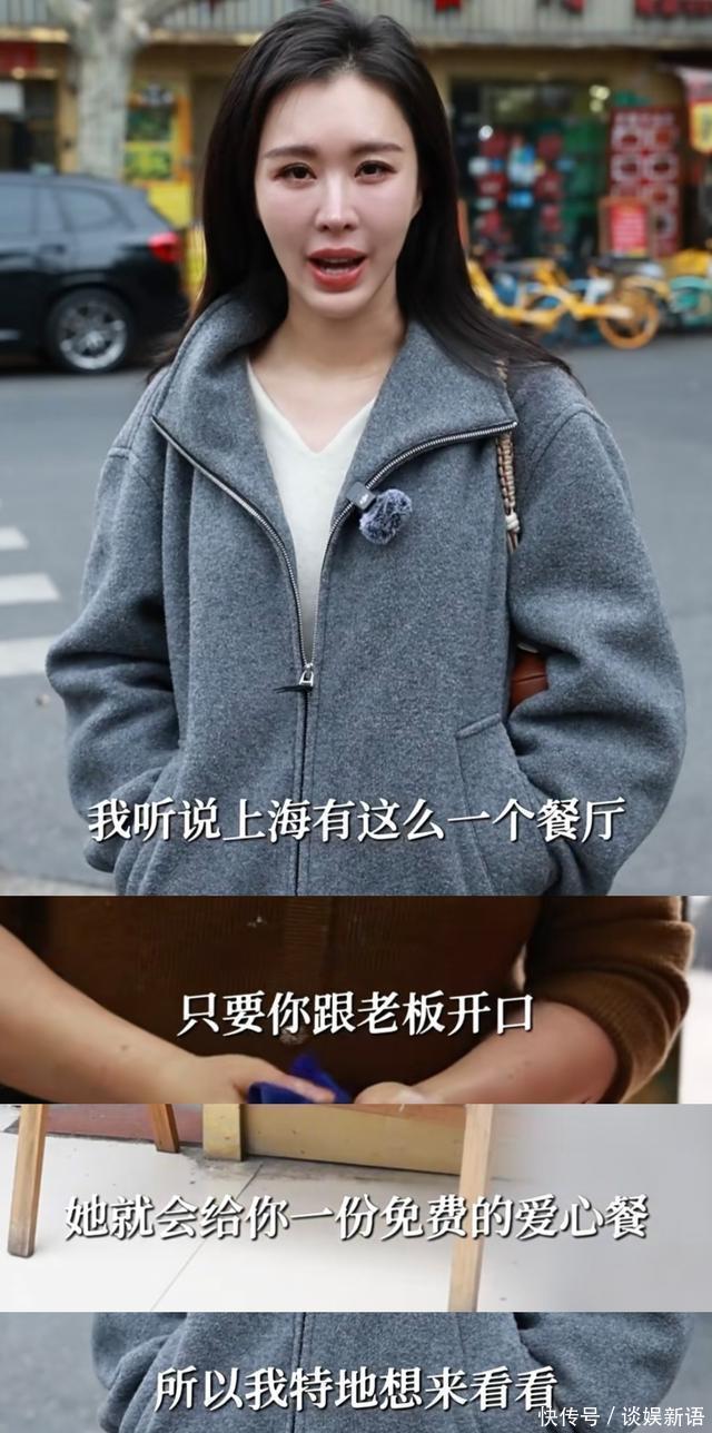她上传了一则视频。视频里,她一头黑长直自然垂下,身穿白色V字领打底衫,搭配一套深紫色套装,松弛感拉满。 视频显示,她带着团队工作人员去打卡了上海一家爱心餐厅。这家餐厅的老板人很好,只要别人开口就会一份免费的爱心餐。